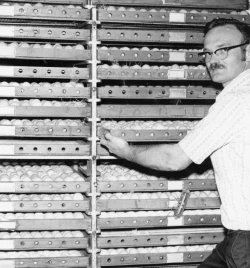 Clifford worked tirelessly with the Missouri Department of Agriculture to eradicate Pullorum Disease, a prevalent issue at the time. Thanks to his efforts, the disease is now almost unheard of. He also collaborated on a trap-nesting program to select birds that laid the most eggs while consuming the least feed. At one time, Clifford operated three hatcheries in Lebanon and nearby towns, during an era when nearly every town had its own hatchery. Over time, commercialization and refrigeration led to the decline of small-town hatcheries, but Cackle Hatchery endured.